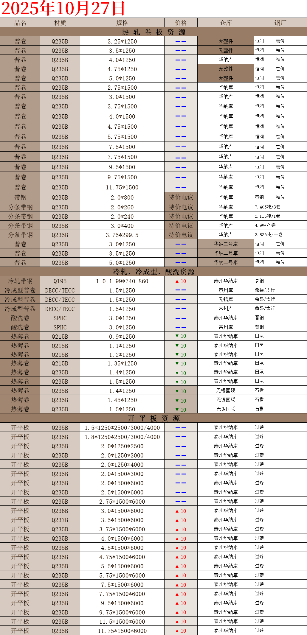 【钢互网报价】2025.10.27 星期一