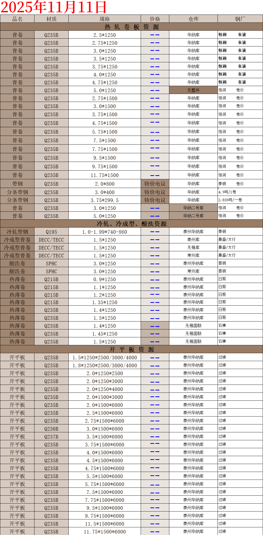 市场变化较快,实际成交价格以电询为准!报价说明 :以上卷板报价均为整件含开价,正常库存开平板出售+50需定开3米以上(包括3米)非整件+60,需定开2-3米非整件+70(包括2米),非整件小于1米-2米+80(包括1米),小于1米另计
