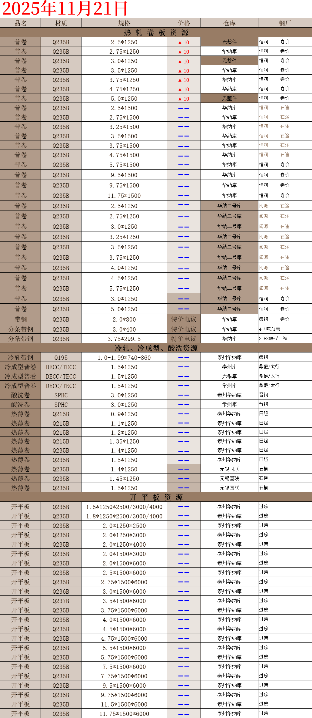 市场变化较快,实际成交价格以电询为准!报价说明 :以上卷板报价均为整件含开价,正常库存开平板出售+50需定开3米以上(包括3米)非整件+60,需定开2-3米非整件+70(包括2米),非整件小于1米-2米+80(包括1米),小于1米另计