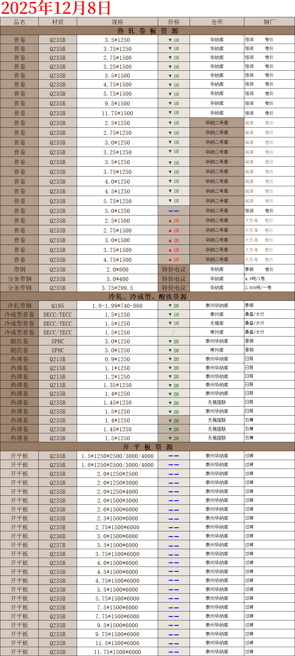 市场变化较快,实际成交价格以电询为准!报价说明 :以上卷板报价均为整件含开价,正常库存开平板出售+50需定开3米以上(包括3米)非整件+60,需定开2-3米非整件+70(包括2米),非整件小于1米-2米+80(包括1米),小于1米另计