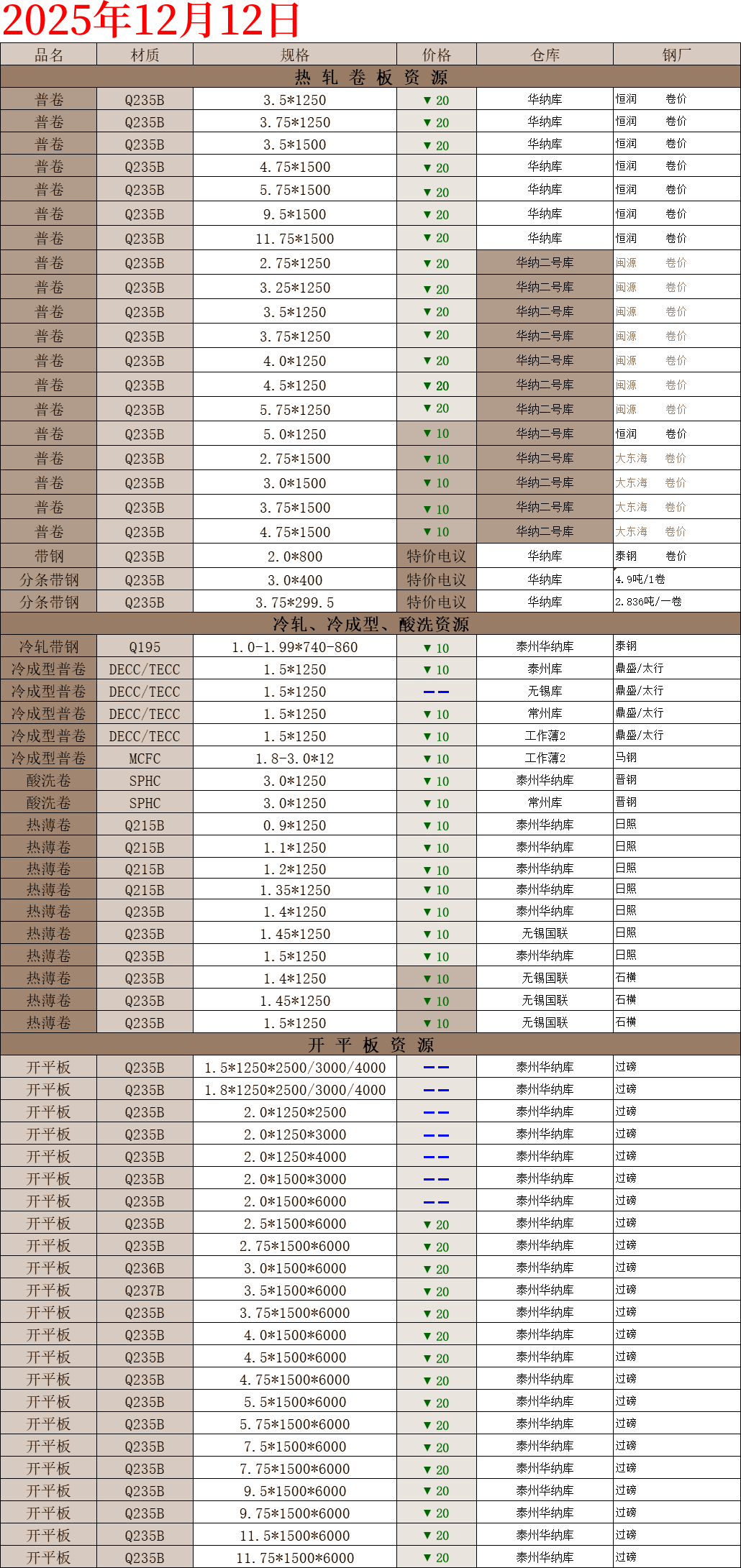 市场变化较快,实际成交价格以电询为准!报价说明 :以上卷板报价均为整件含开价,正常库存开平板出售+50需定开3米以上(包括3米)非整件+60,需定开2-3米非整件+70(包括2米),非整件小于1米-2米+80(包括1米),小于1米另计