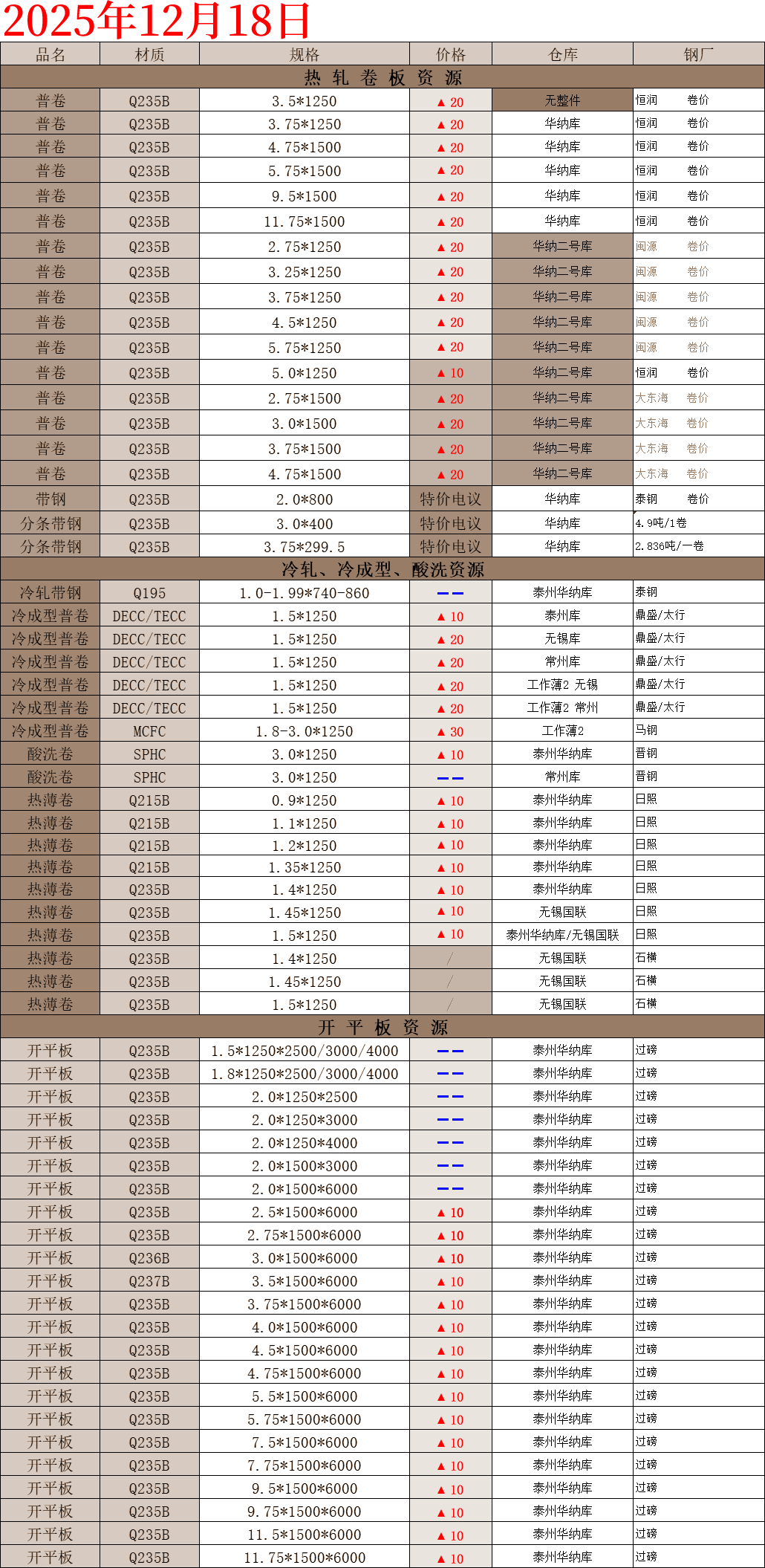 市场变化较快,实际成交价格以电询为准!报价说明 :以上卷板报价均为整件含开价,正常库存开平板出售+50需定开3米以上(包括3米)非整件+60,需定开2-3米非整件+70(包括2米),非整件小于1米-2米+80(包括1米),小于1米另计
