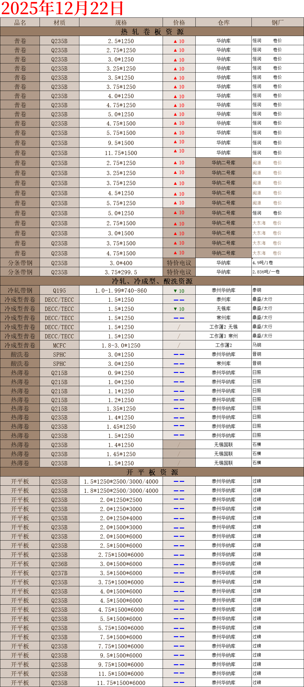 市场变化较快,实际成交价格以电询为准!报价说明 :以上卷板报价均为整件含开价,正常库存开平板出售+50需定开3米以上(包括3米)非整件+60,需定开2-3米非整件+70(包括2米),非整件小于1米-2米+80(包括1米),小于1米另计