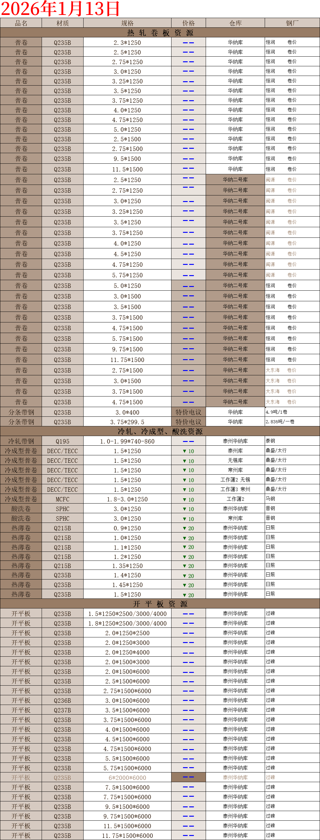 【钢互网报价】2026.1.13 星期二