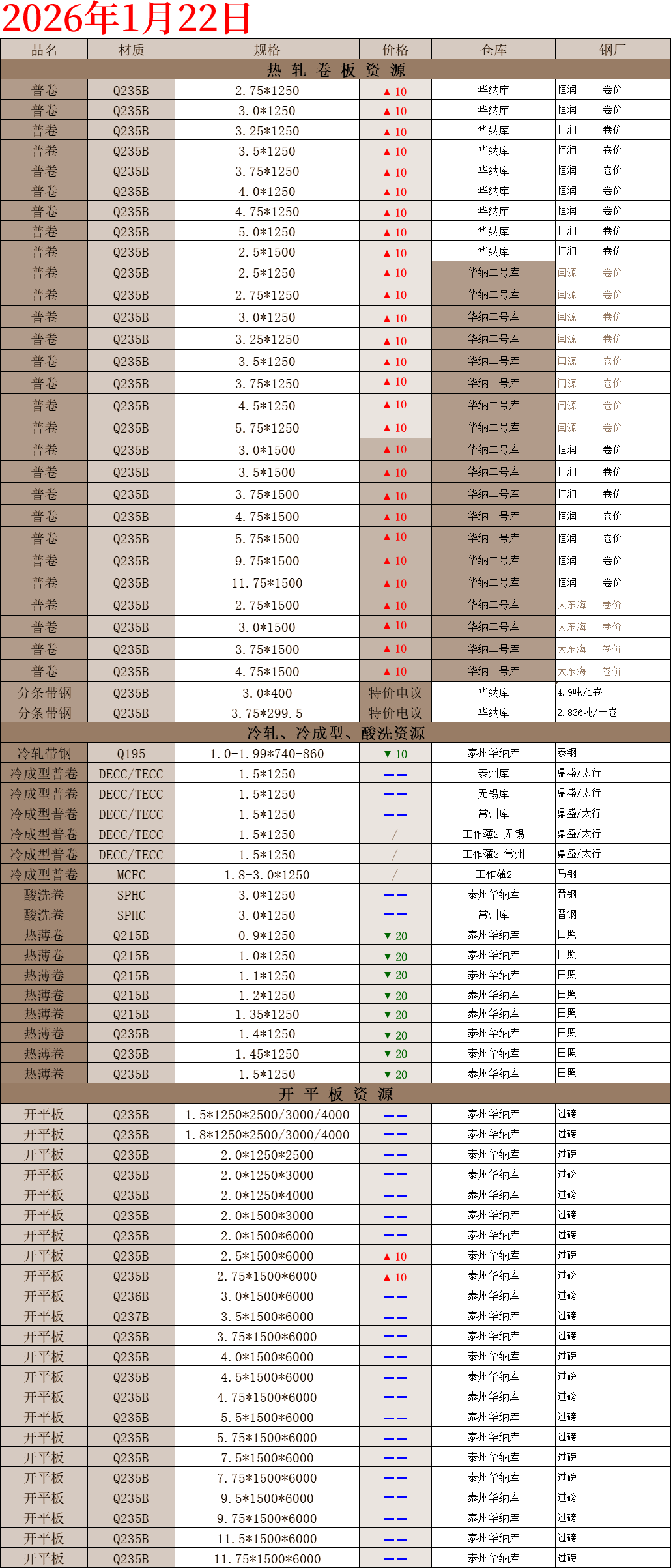 市场变化较快,实际成交价格以电询为准!报价说明 :以上卷板报价均为整件含开价,正常库存开平板出售+50需定开3米以上(包括3米)非整件+60,需定开2-3米非整件+70(包括2米),非整件小于1米-2米+80(包括1米),小于1米另计