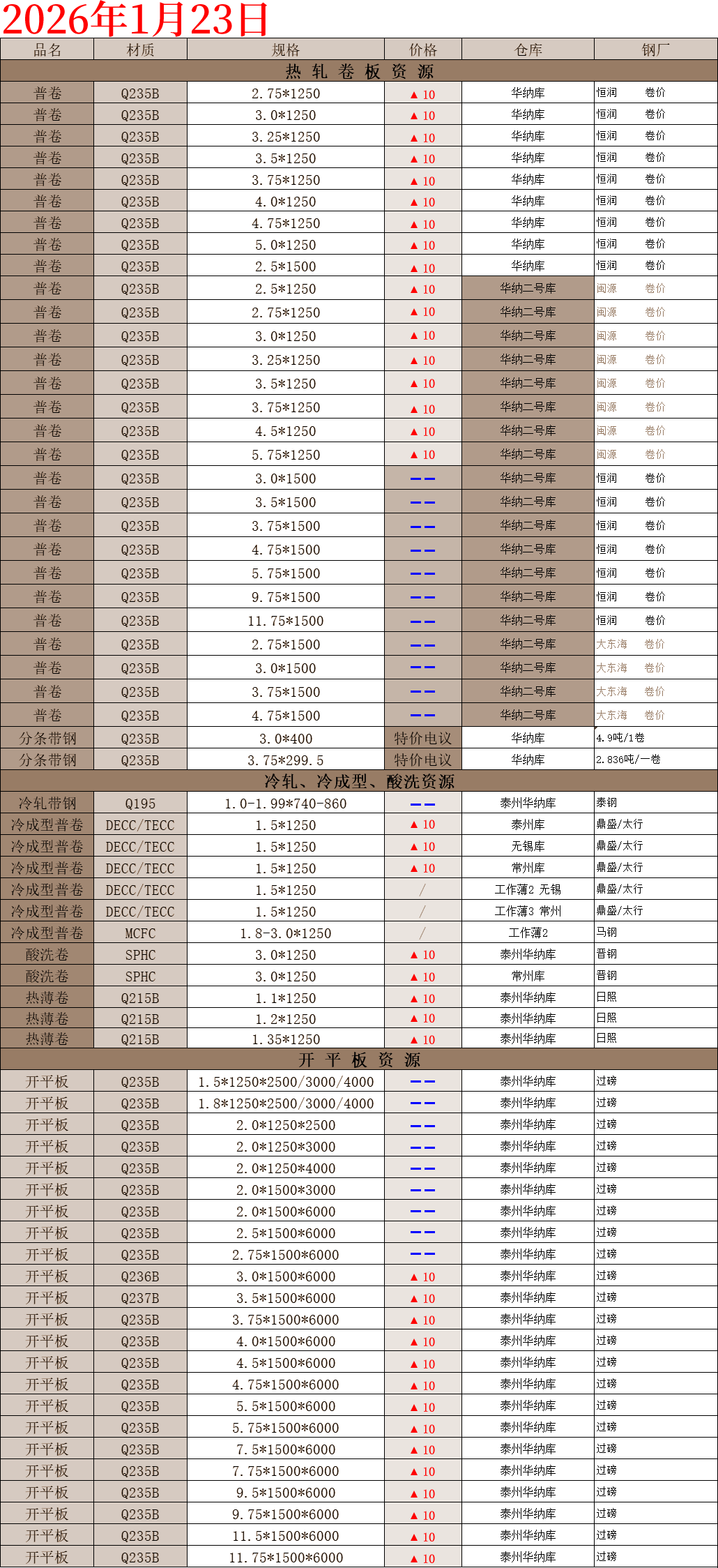 【钢互网报价】2026.1.23 星期五
