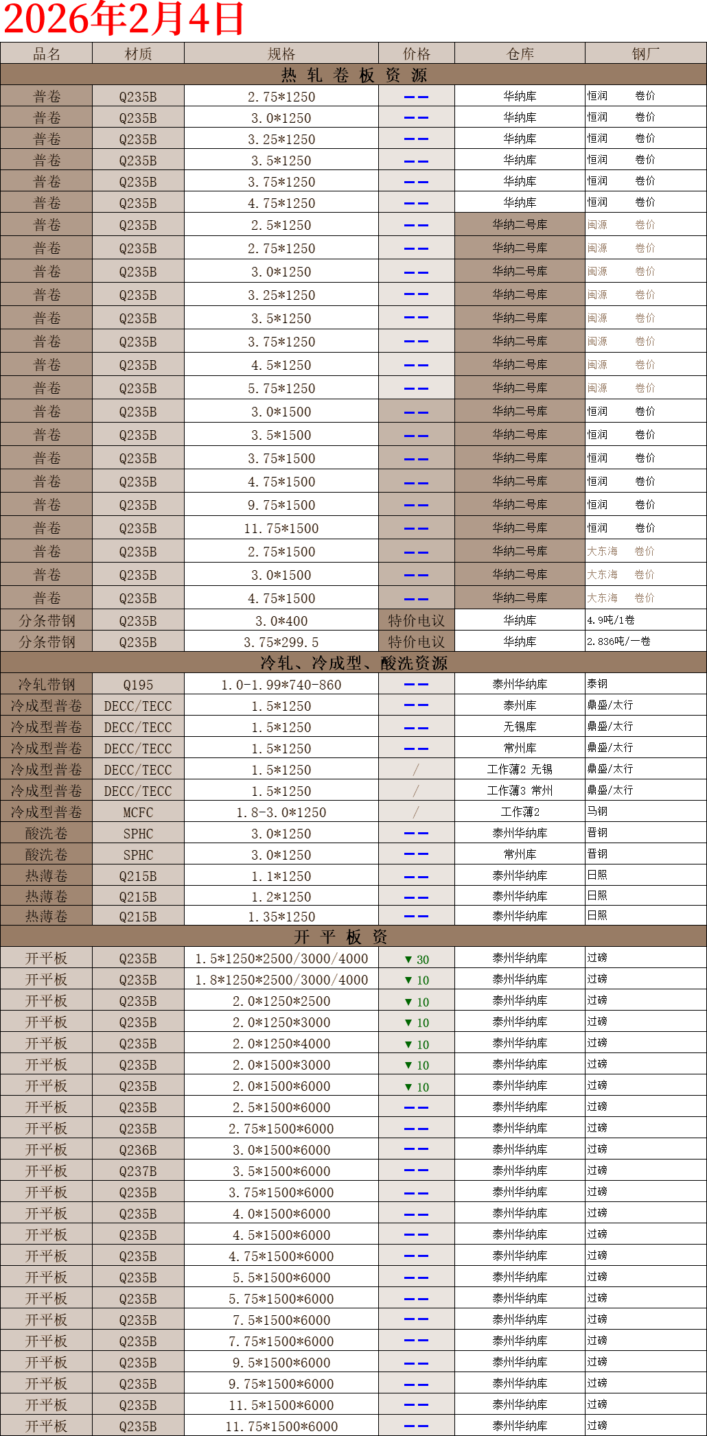 市场变化较快,实际成交价格以电询为准!报价说明 :以上卷板报价均为整件含开价,正常库存开平板出售+50需定开3米以上(包括3米)非整件+60,需定开2-3米非整件+70(包括2米),非整件小于1米-2米+80(包括1米),小于1米另计