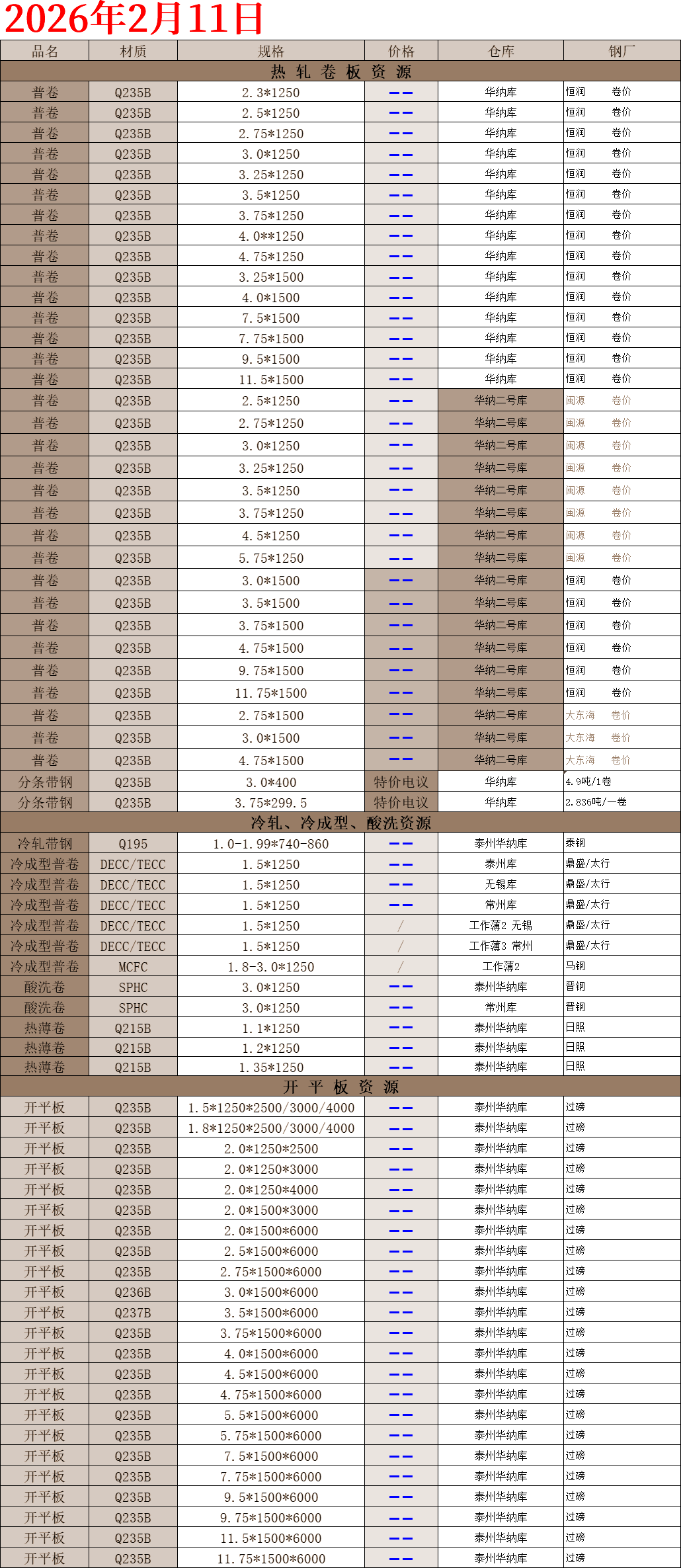 【钢互网报价】2026.02.11 星期三