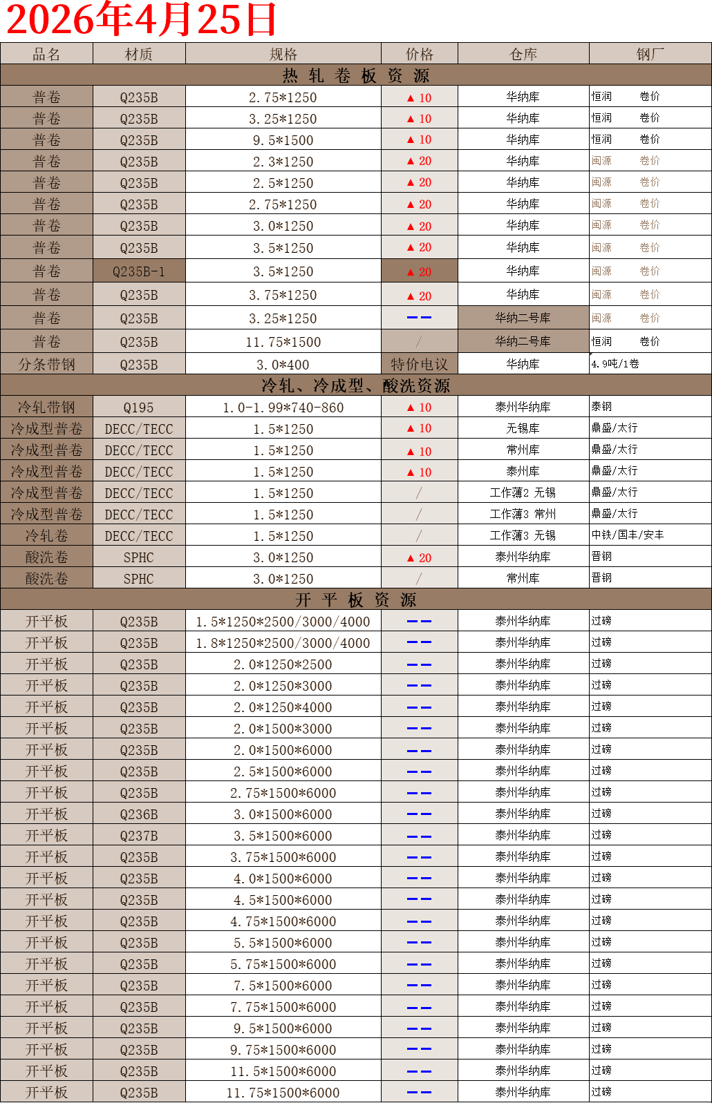 市场变化较快,实际成交价格以电询为准!报价说明 :以上卷板报价均为整件含开价,正常库存开平板出售+50需定开3米以上(包括3米)非整件+60,需定开2-3米非整件+70(包括2米),非整件小于1米-2米+80(包括1米),小于1米另计