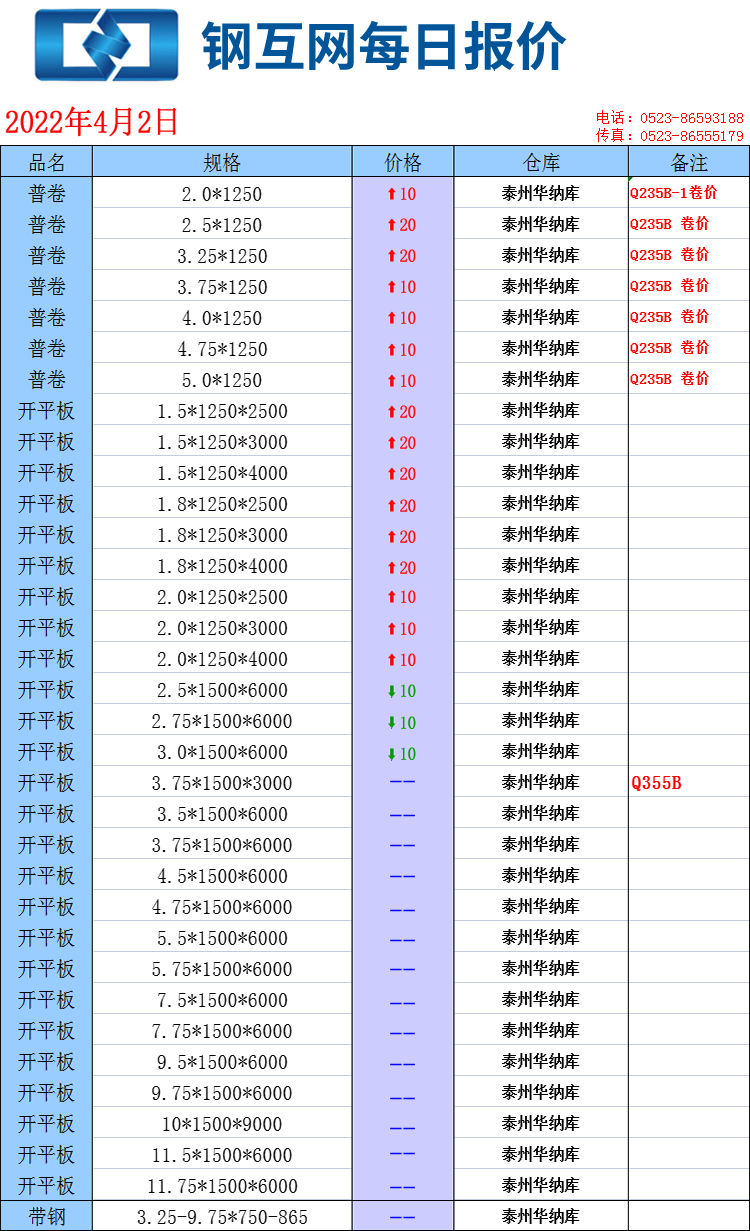 市场变化较快,实际成交价格以电询为准!报价说明 :以上卷板报价均为整件含开价,正常库存开平板出售+50需定开3米以上(包括3米)非整件+60,需定开2-3米非整件+70(包括2米),非整件小于1米-2米+80(包括1米),小于1米另计