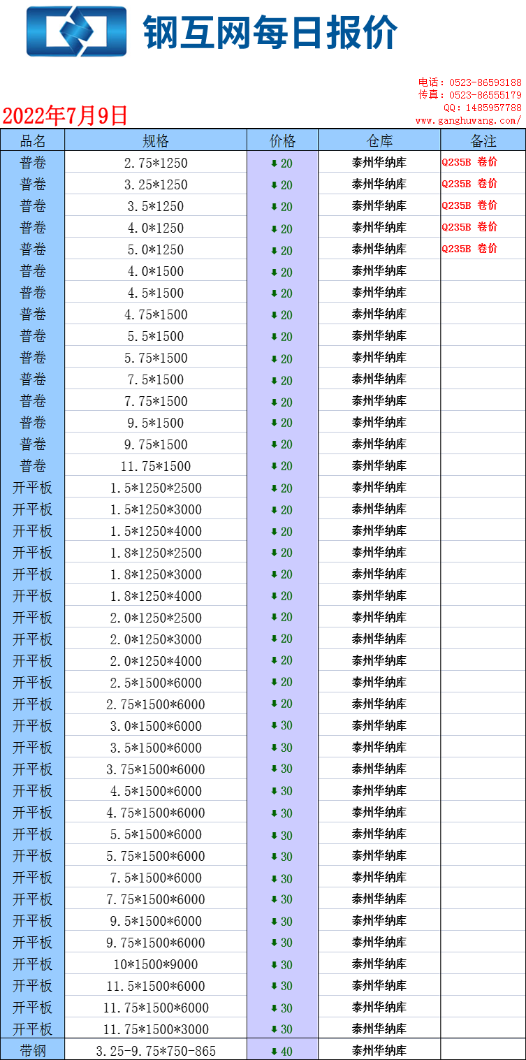 市场变化较快,实际成交价格以电询为准!报价说明 :以上卷板报价均为整件含开价,正常库存开平板出售+50需定开3米以上(包括3米)非整件+60,需定开2-3米非整件+70(包括2米),非整件小于1米-2米+80(包括1米),小于1米另计