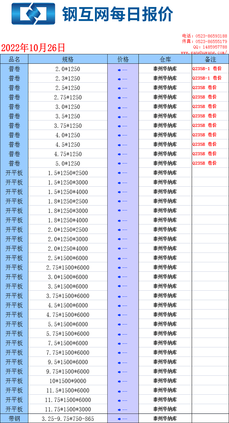 【钢互网报价】10.26 星期三
