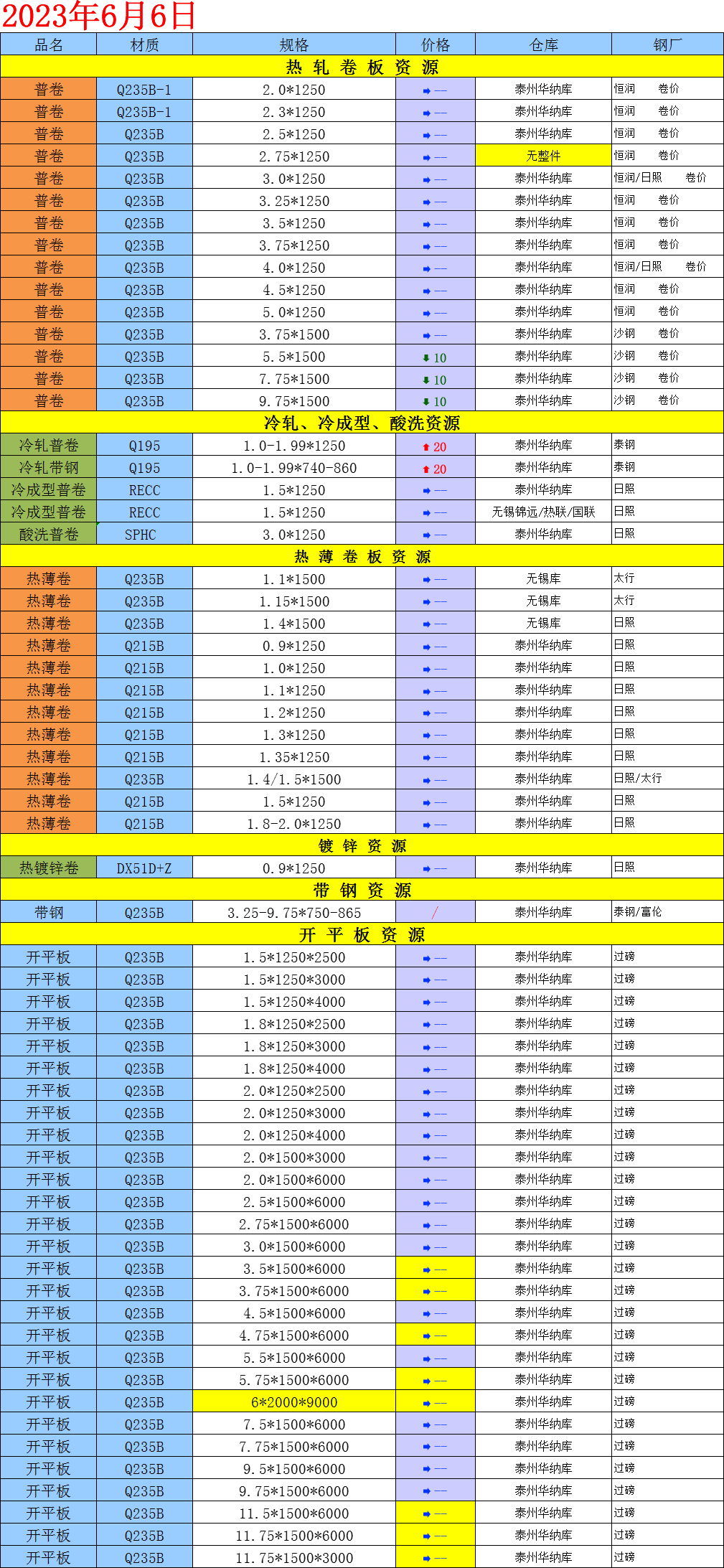 【钢互网报价】06.06 星期二