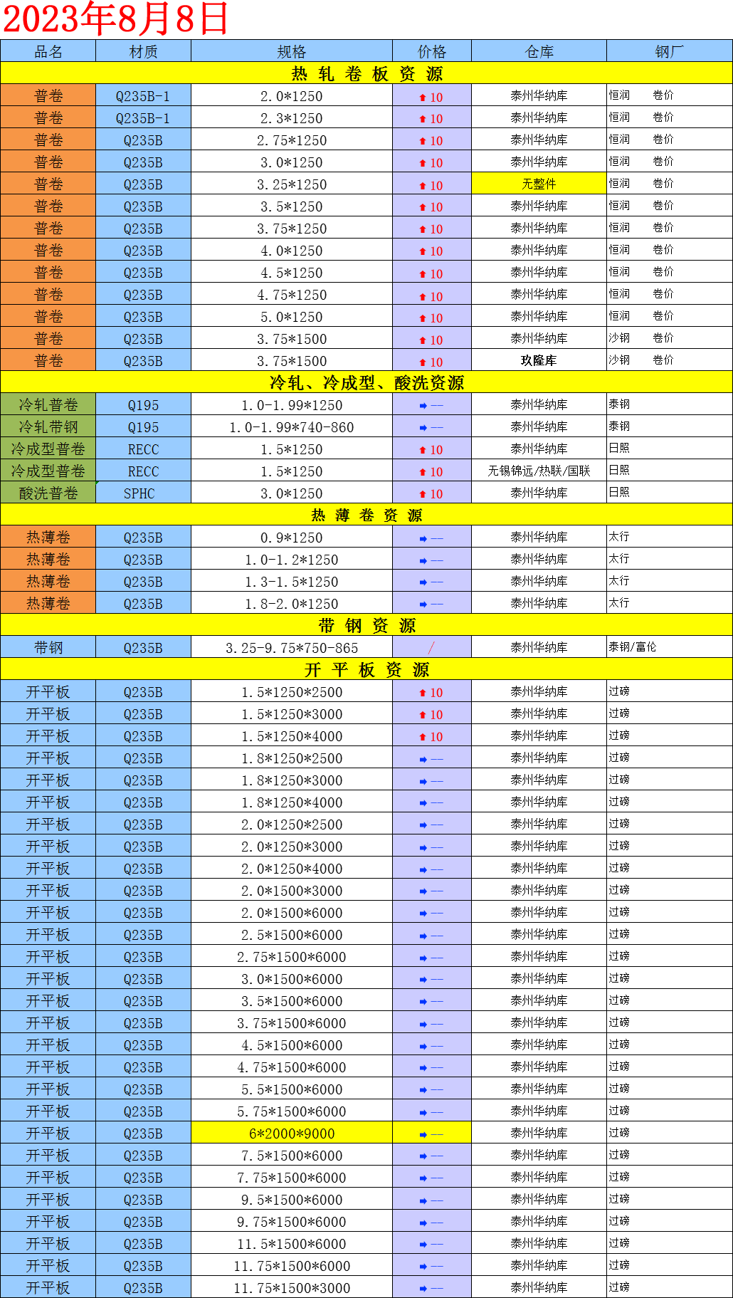 市场变化较快,实际成交价格以电询为准!报价说明 :以上卷板报价均为整件含开价,正常库存开平板出售+50需定开3米以上(包括3米)非整件+60,需定开2-3米非整件+70(包括2米),非整件小于1米-2米+80(包括1米),小于1米另计
