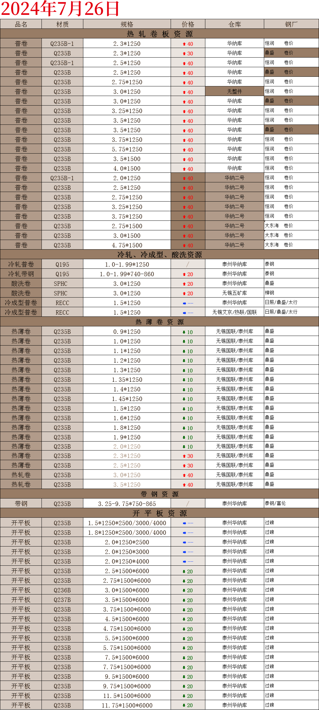 市场变化较快,实际成交价格以电询为准!报价说明 :以上卷板报价均为整件含开价,正常库存开平板出售+50需定开3米以上(包括3米)非整件+60,需定开2-3米非整件+70(包括2米),非整件小于1米-2米+80(包括1米),小于1米另计