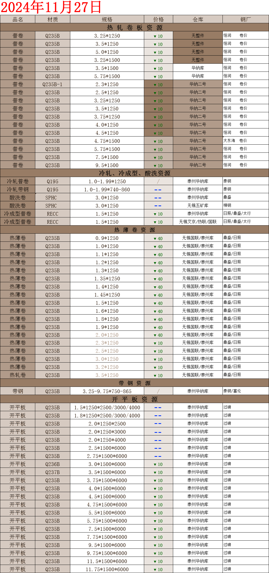 市场变化较快,实际成交价格以电询为准!报价说明 :以上卷板报价均为整件含开价,正常库存开平板出售+50需定开3米以上(包括3米)非整件+60,需定开2-3米非整件+70(包括2米),非整件小于1米-2米+80(包括1米),小于1米另计