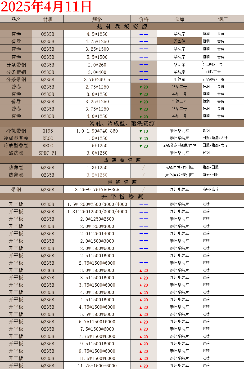 市场变化较快,实际成交价格以电询为准!报价说明 :以上卷板报价均为整件含开价,正常库存开平板出售+50需定开3米以上(包括3米)非整件+60,需定开2-3米非整件+70(包括2米),非整件小于1米-2米+80(包括1米),小于1米另计