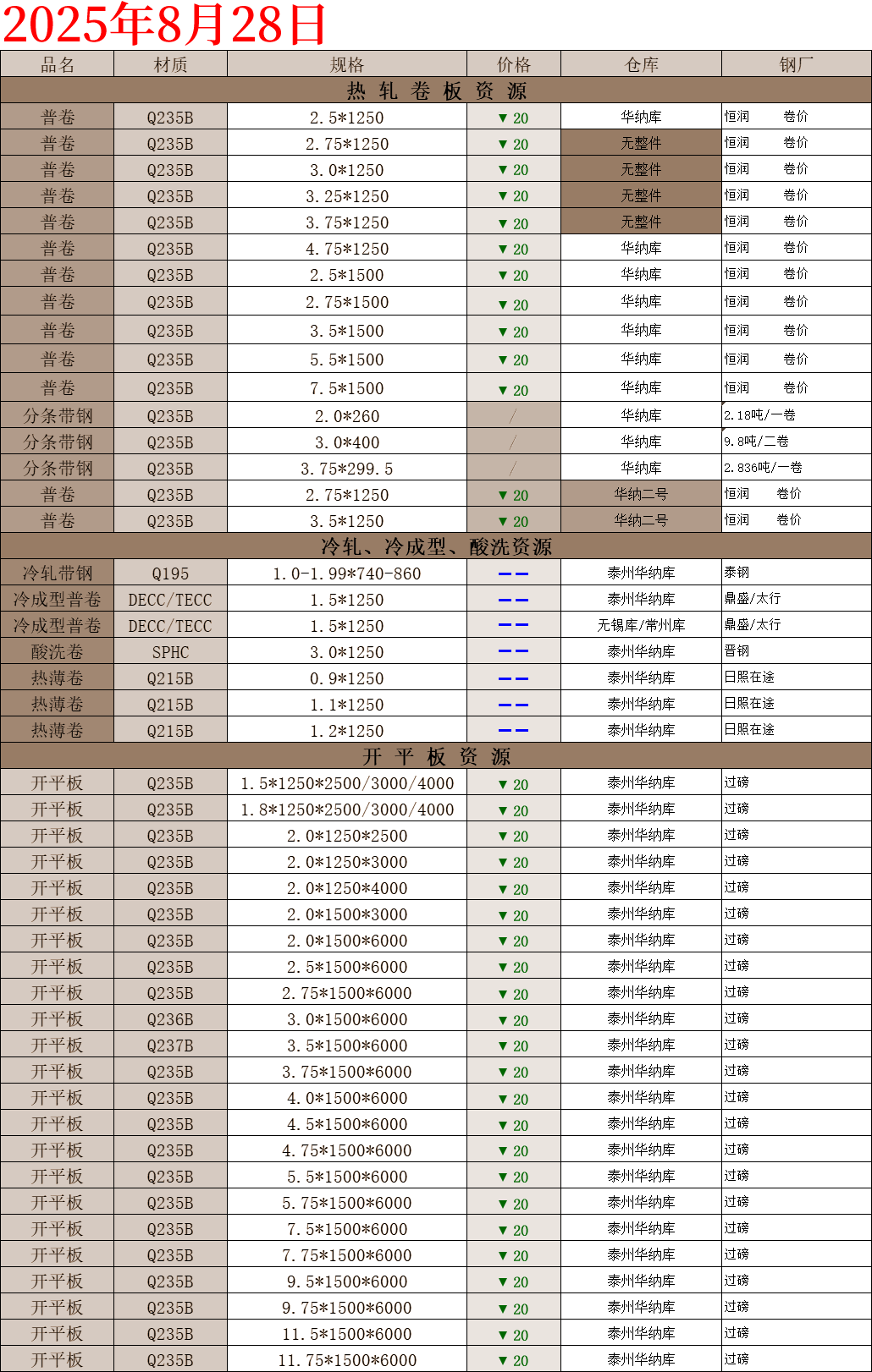 市场变化较快,实际成交价格以电询为准!报价说明 :以上卷板报价均为整件含开价,正常库存开平板出售+50需定开3米以上(包括3米)非整件+60,需定开2-3米非整件+70(包括2米),非整件小于1米-2米+80(包括1米),小于1米另计