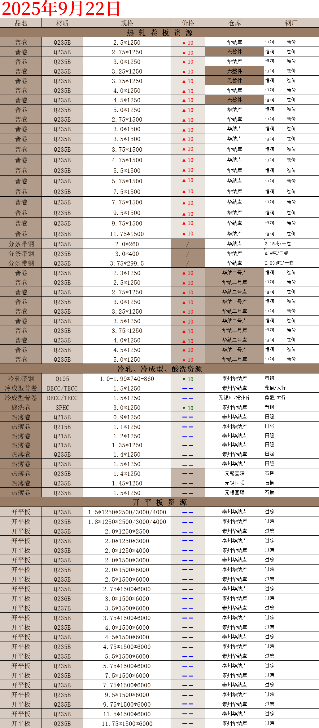 【钢互网报价】2025.9.22 星期一