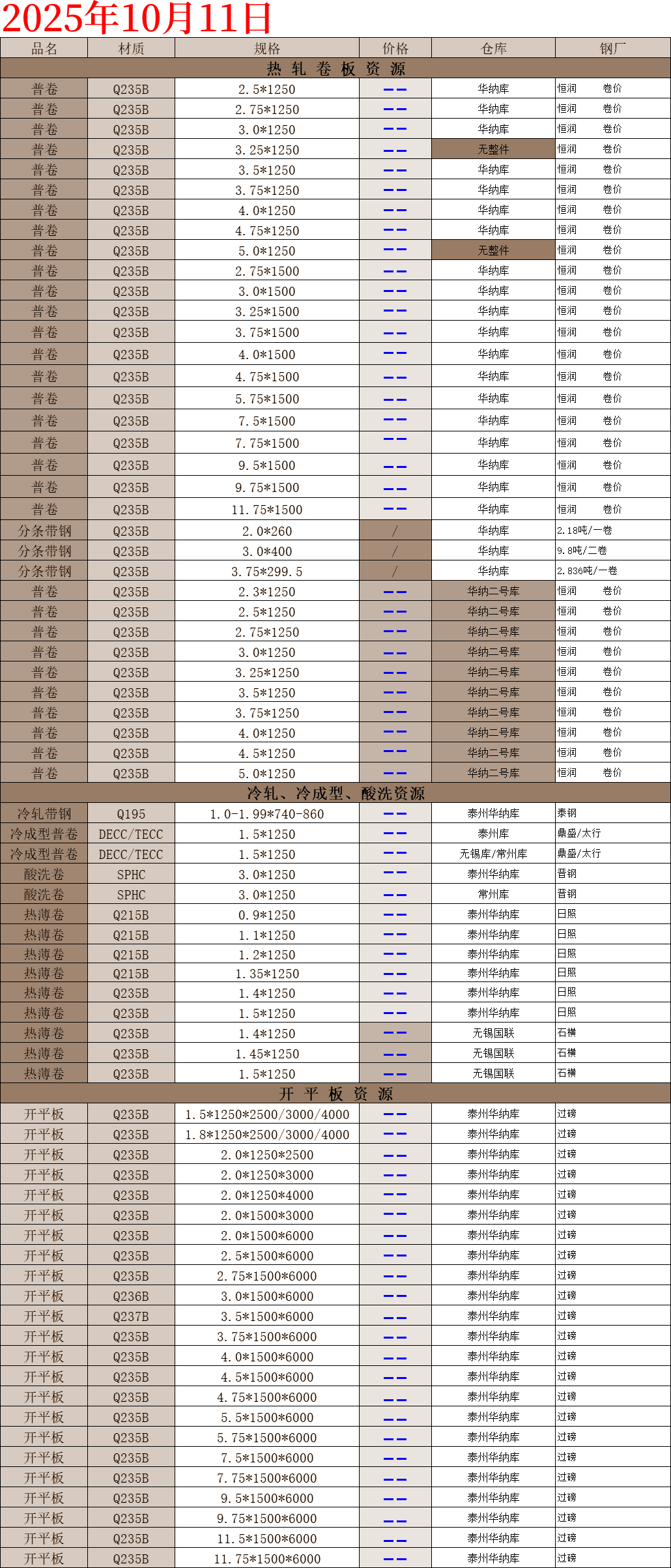 市场变化较快,实际成交价格以电询为准!报价说明 :以上卷板报价均为整件含开价,正常库存开平板出售+50需定开3米以上(包括3米)非整件+60,需定开2-3米非整件+70(包括2米),非整件小于1米-2米+80(包括1米),小于1米另计