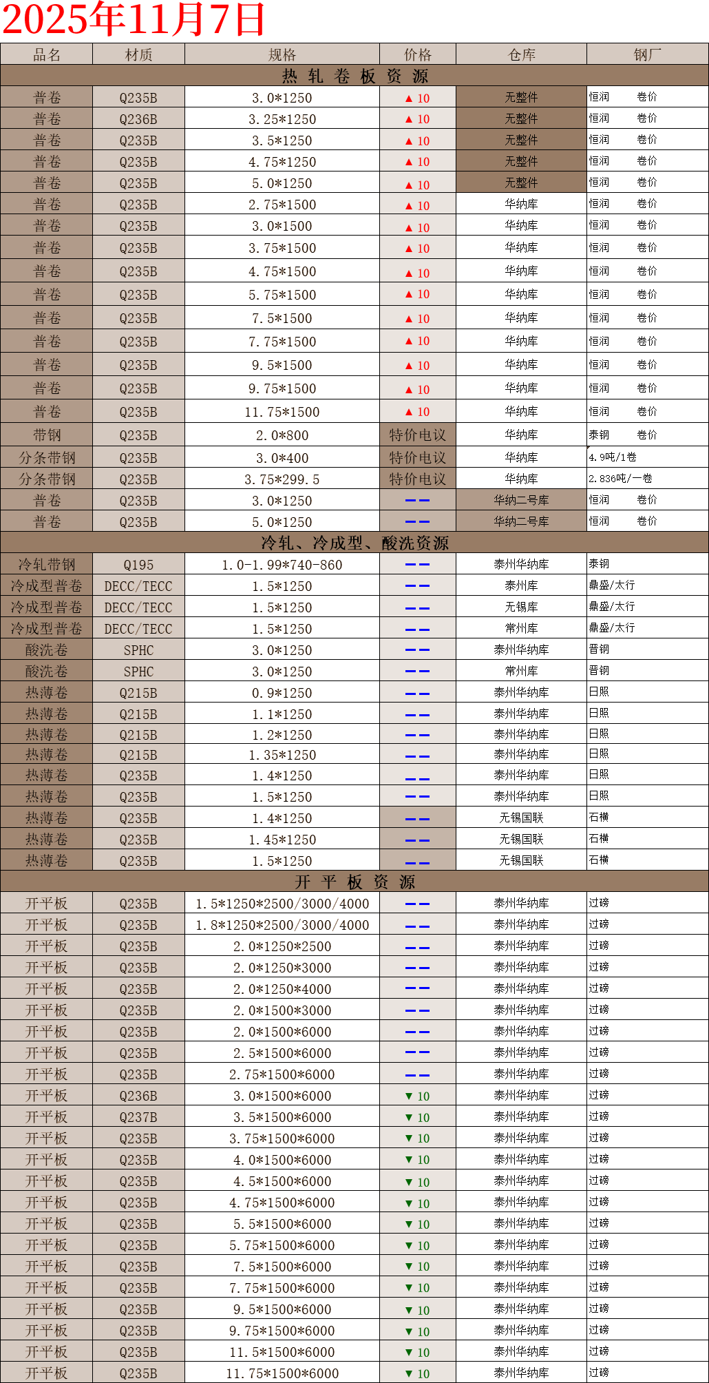 市场变化较快,实际成交价格以电询为准!报价说明 :以上卷板报价均为整件含开价,正常库存开平板出售+50需定开3米以上(包括3米)非整件+60,需定开2-3米非整件+70(包括2米),非整件小于1米-2米+80(包括1米),小于1米另计