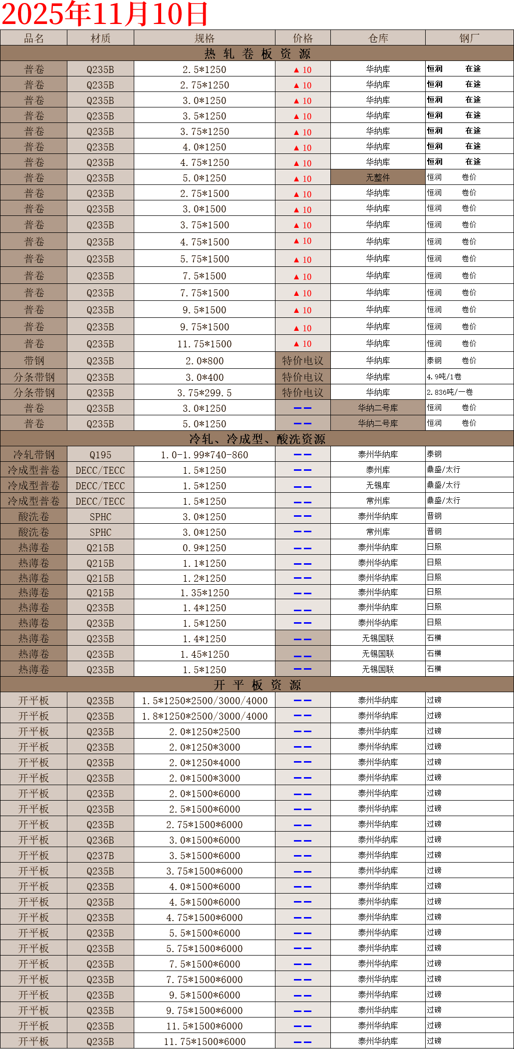 【钢互网报价】2025.11.10 星期一