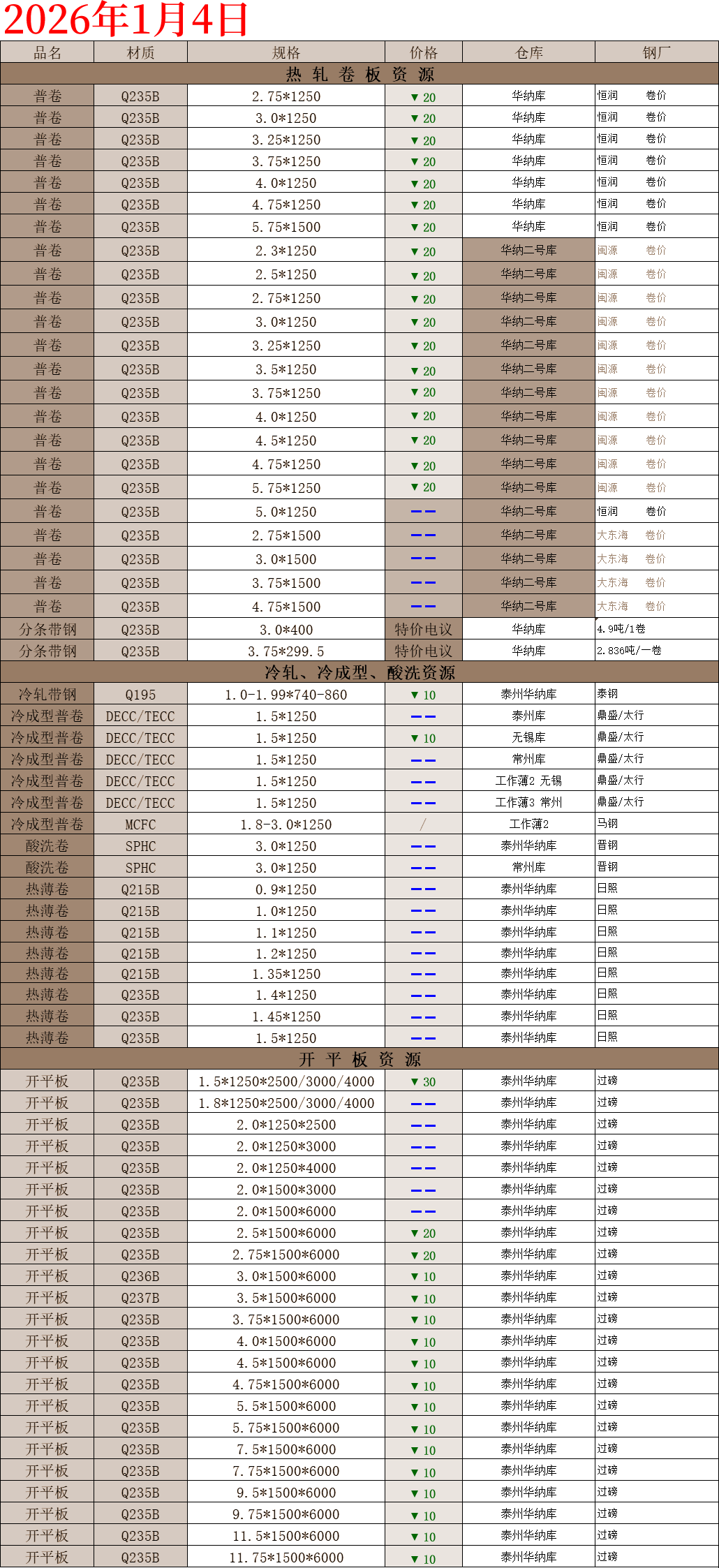 市场变化较快,实际成交价格以电询为准!报价说明 :以上卷板报价均为整件含开价,正常库存开平板出售+50需定开3米以上(包括3米)非整件+60,需定开2-3米非整件+70(包括2米),非整件小于1米-2米+80(包括1米),小于1米另计