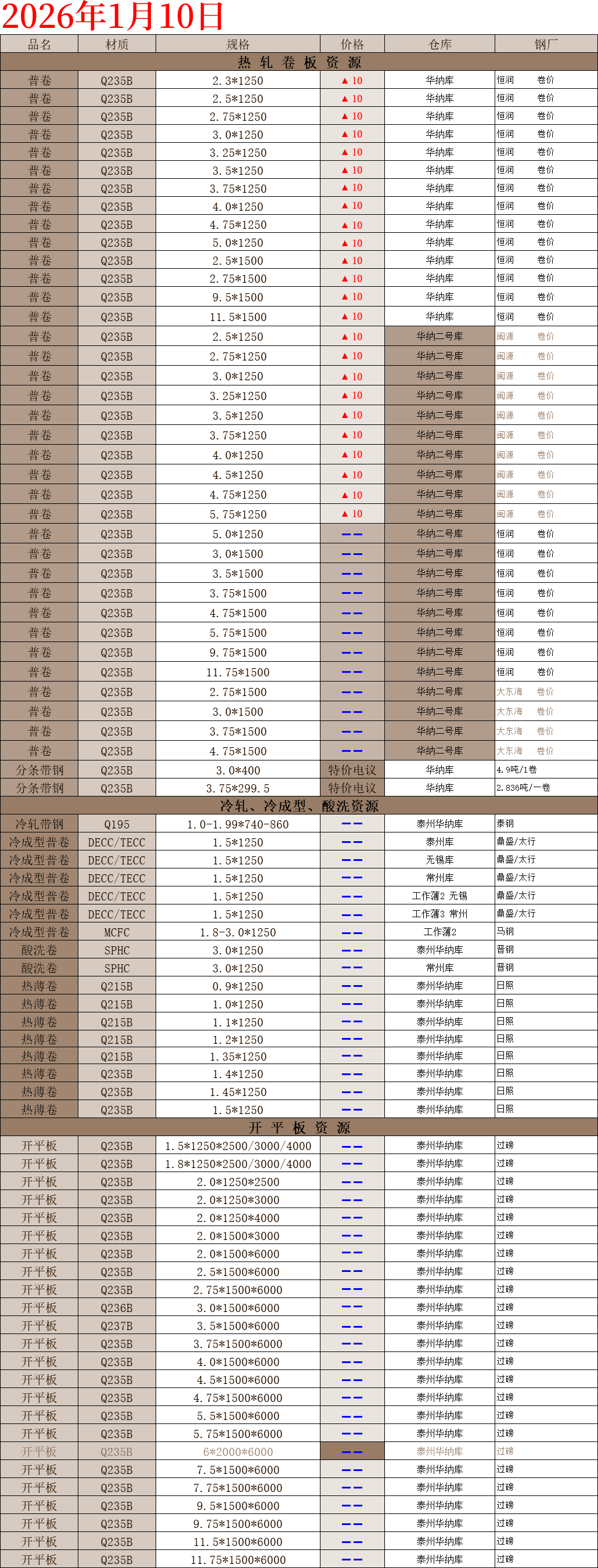 【钢互网报价】2026.1.10 星期六