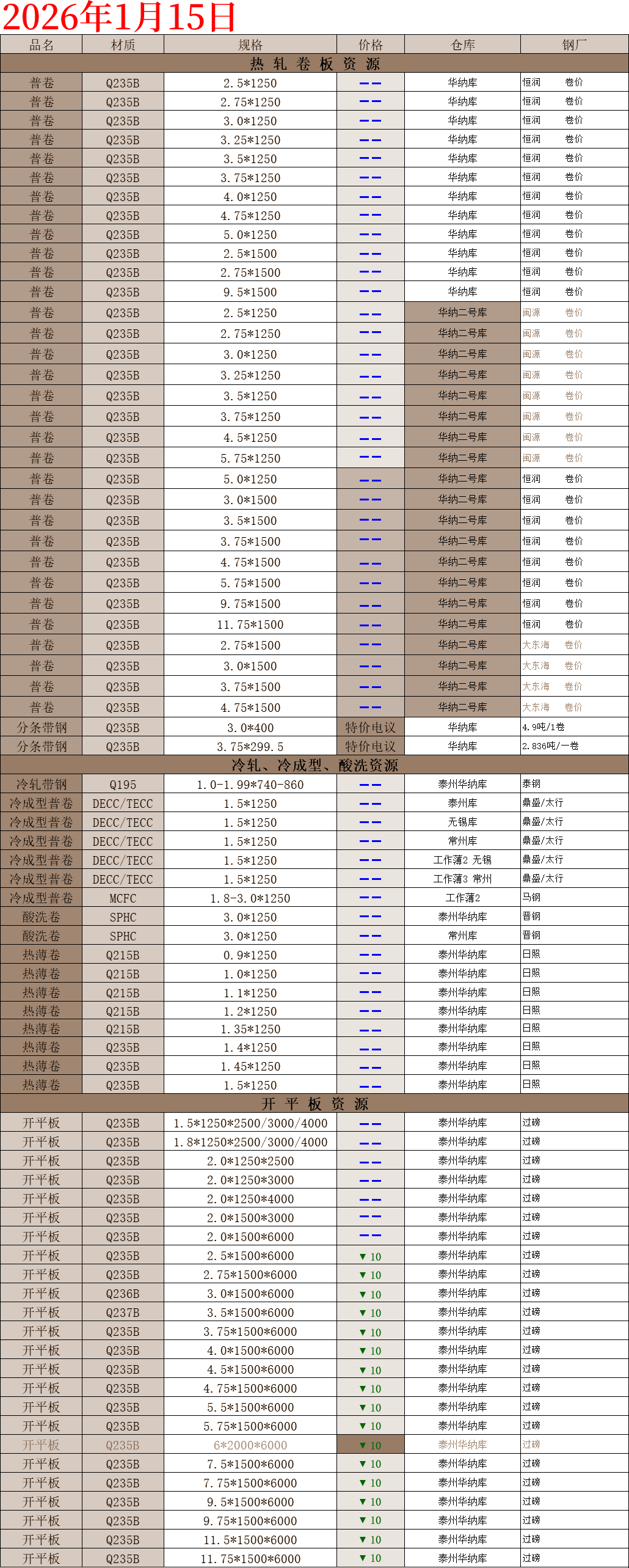 【钢互网报价】2026.1.15 星期四