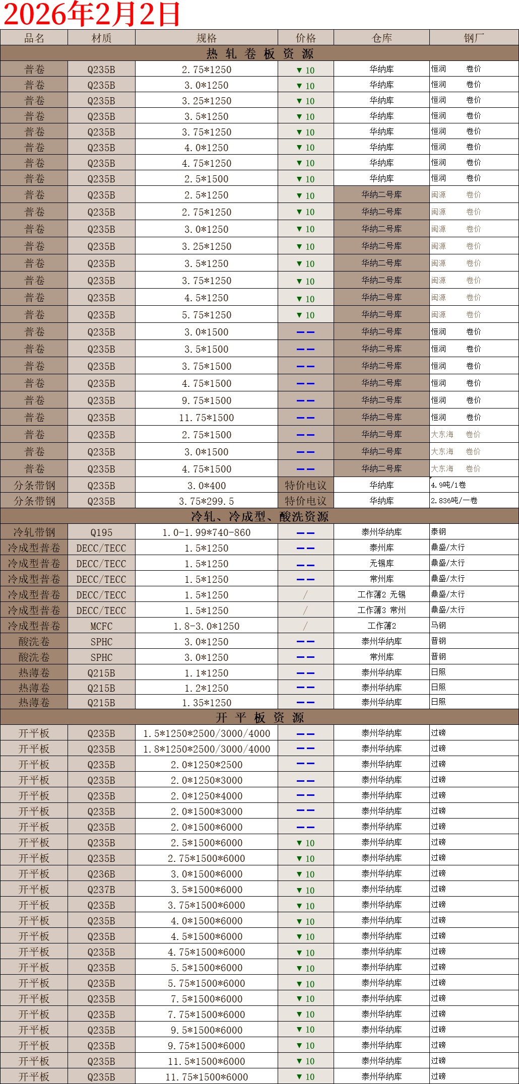 【钢互网报价】2026.02.02 星期一