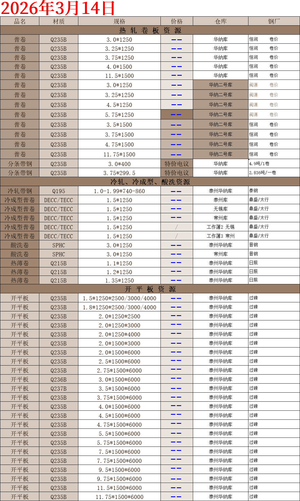 市场变化较快,实际成交价格以电询为准!报价说明 :以上卷板报价均为整件含开价,正常库存开平板出售+50需定开3米以上(包括3米)非整件+60,需定开2-3米非整件+70(包括2米),非整件小于1米-2米+80(包括1米),小于1米另计