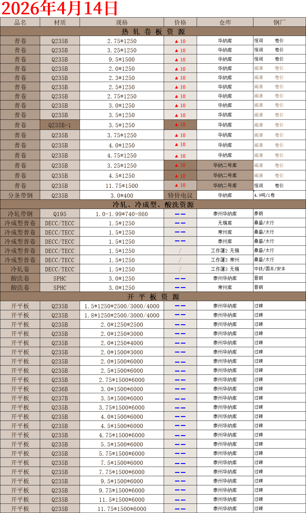 【钢互网报价】2026.04.14 星期二
